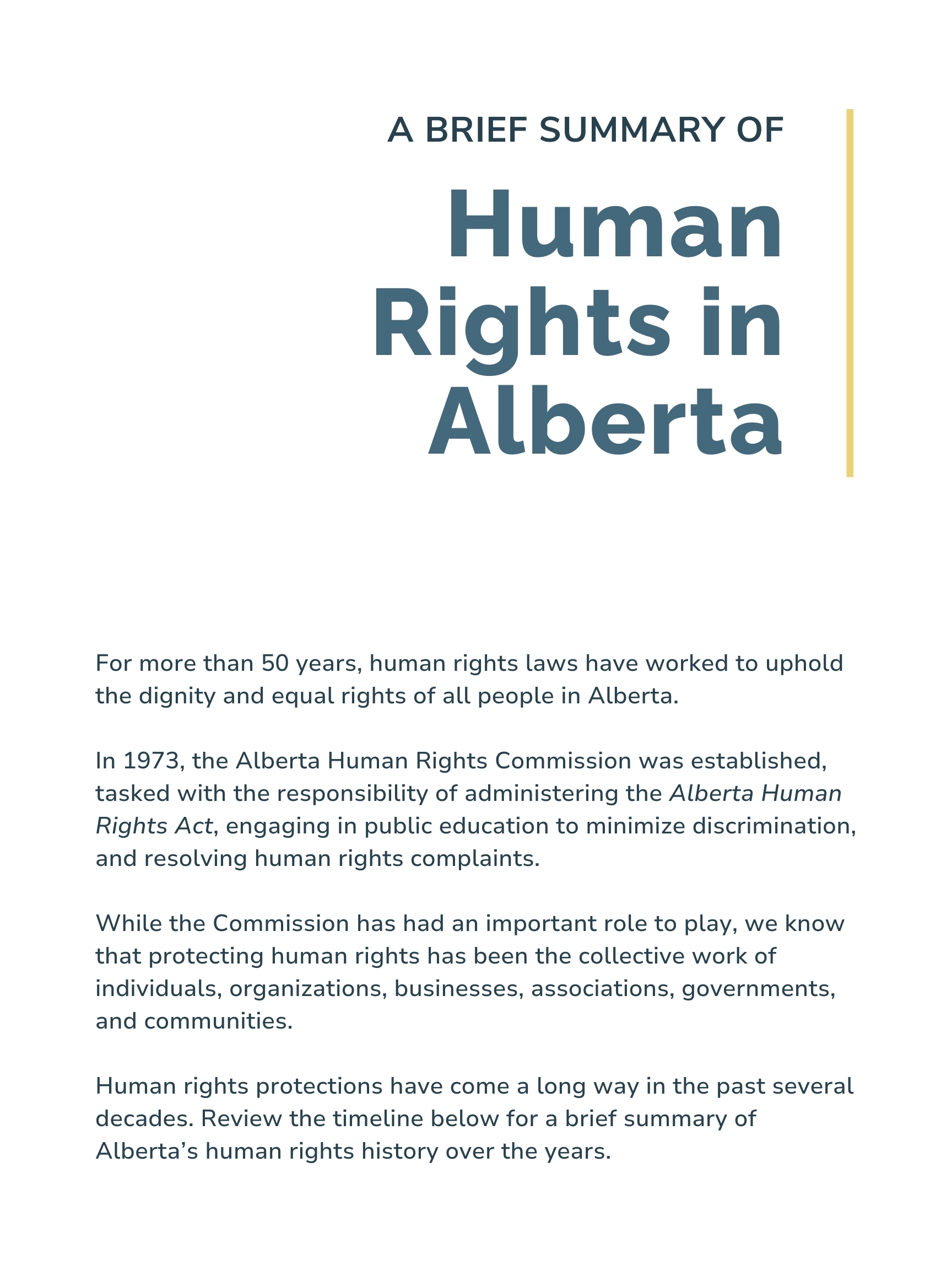 Since 1973, the Commission has overseen Alberta’s human rights legislation, affirming the fundamental principle that all persons are equal in our province.